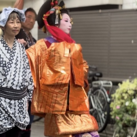 花魁道中なんて、普通、観光客でごった返している中でしか拝見できないような光景ですが、静かな住宅街の向島に響き渡る太夫さんの掛け声と、お客さんたちの発声、拍子木の音がなんとも幻想的で美しかったです。