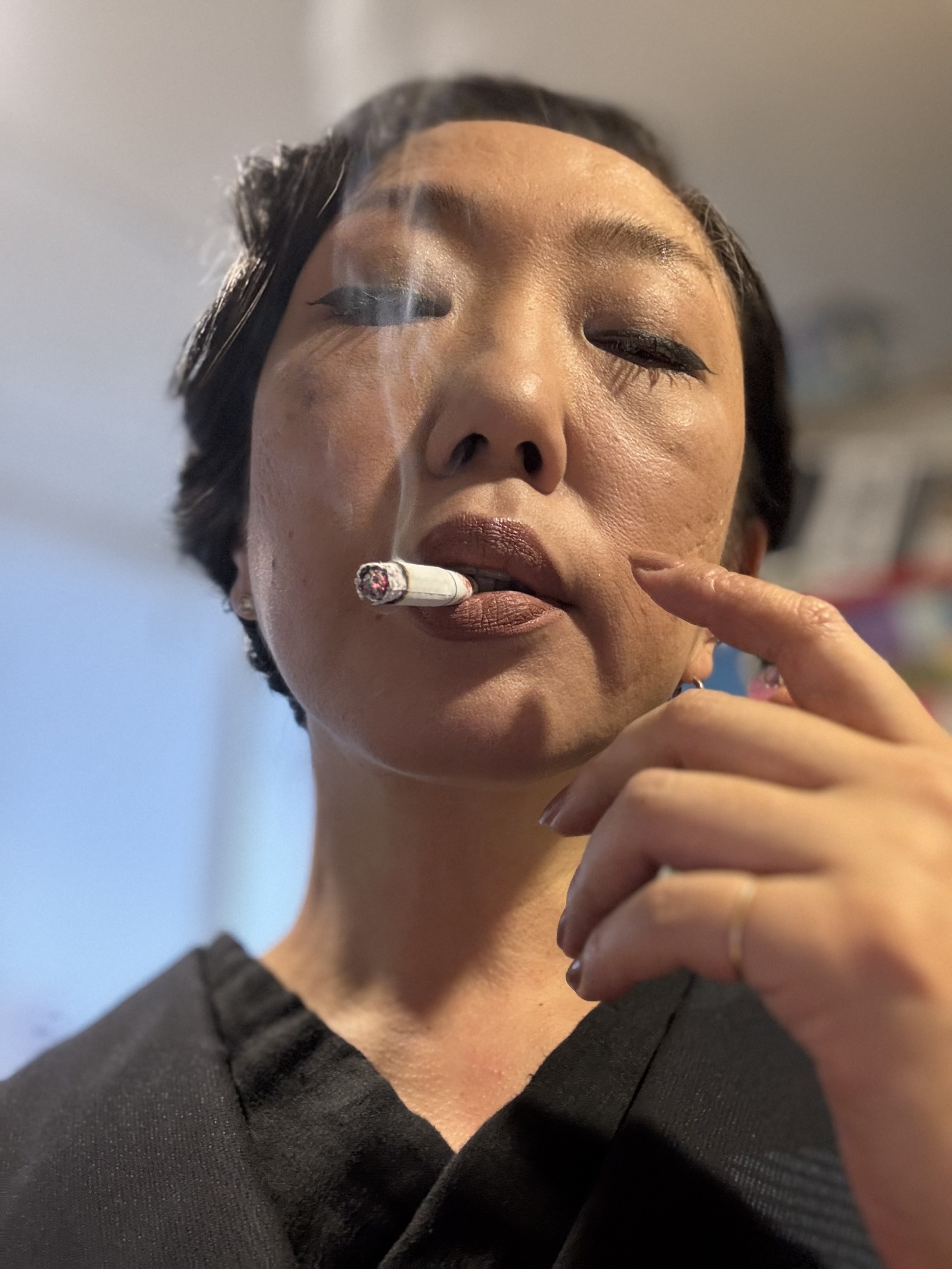 最近購入したアイライナーがやたらと調子が良くて、今朝、ものすごい頭痛で死にそうだったんですが、うまく書けたわっと思って自撮りしました。大好きなタバコ吸いながら。そしてここにアップさせて頂きます。ホント、図々しい。。。